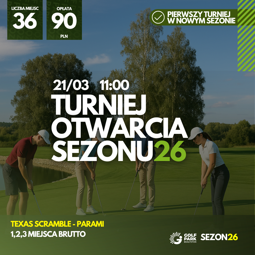 Nie mogliśmy lepiej rozpocząć sezonu! 21 marca, dokładnie w pierwszy dzień wiosny, zapraszamy na Turniej Otwarcia Sezonu w Golf Park Białystok. To będzie pierwszy turniej rozgrywany na polu golfowym w tym roku – idealna okazja, żeby oficjalnie rozpocząć sezon i wrócić do gry na świeżym powietrzu. 🌱⛳
